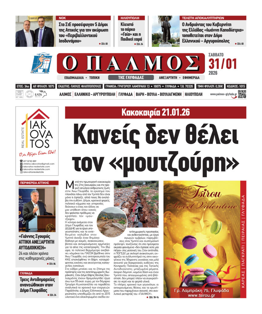 Διαβάστε το Σάββατο 31 Ιανουαρίου 2026, στον «Παλμό της Γλυφάδας»…