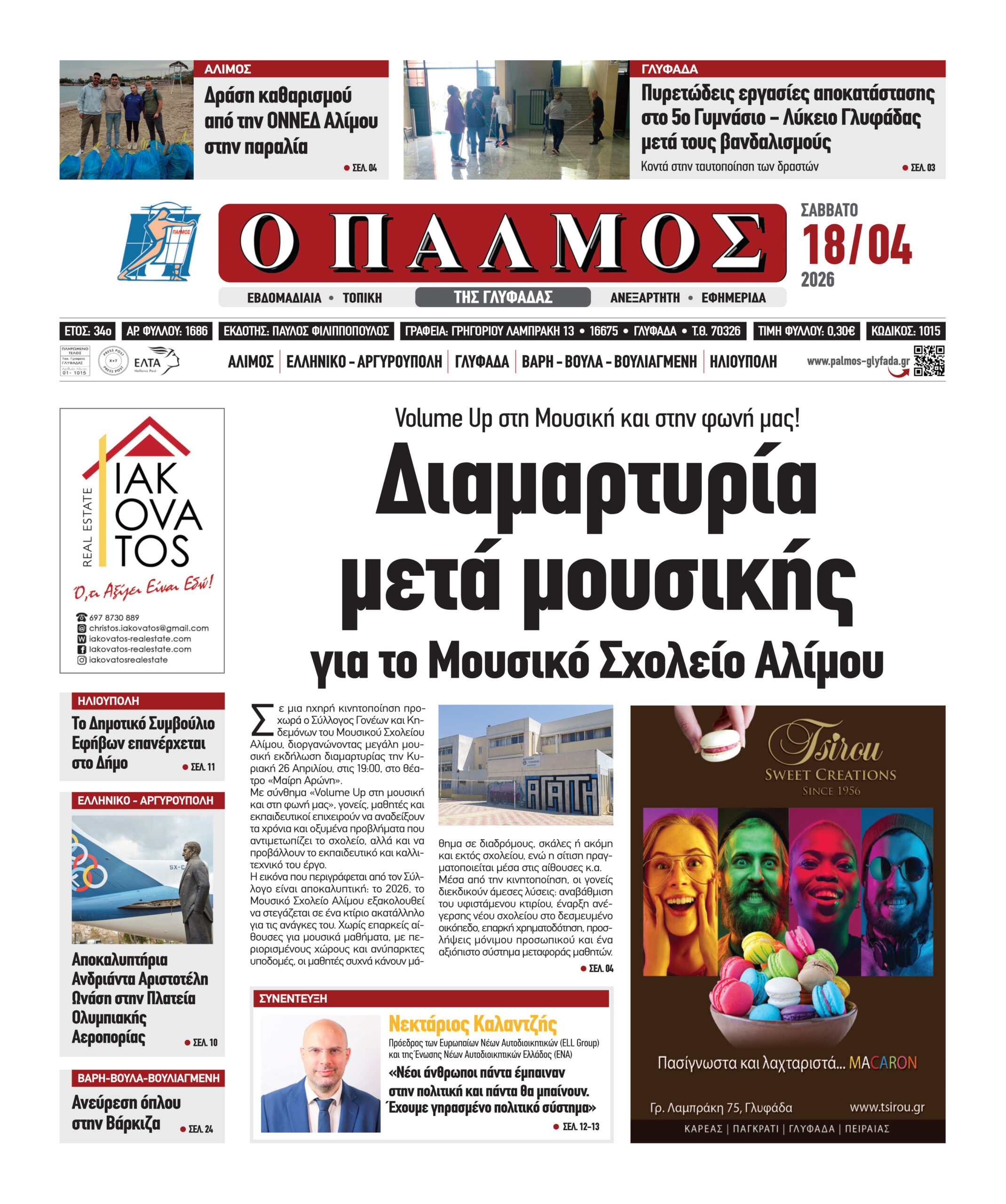 Διαβάστε το Σάββατο 18 Απριλίου 2026, στον «Παλμό της Γλυφάδας»…