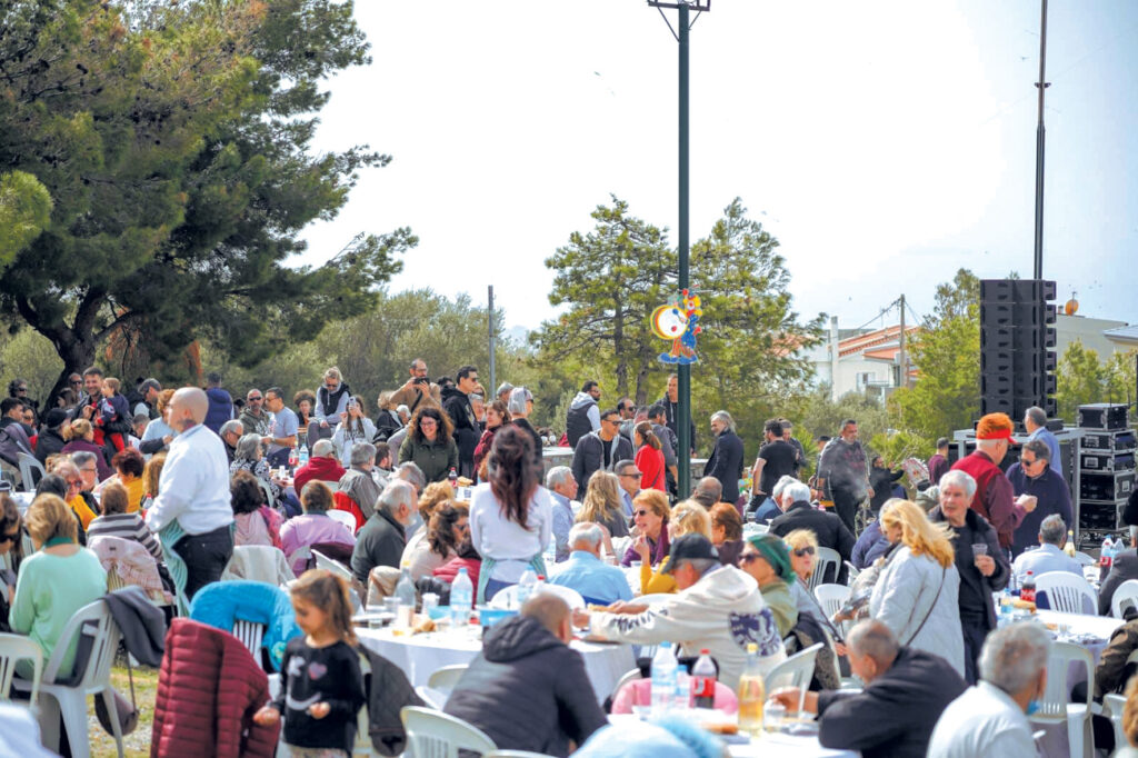 Τα καζάνια και οι φούρνοι της δημοτικής υπηρεσίας εργάστηκαν στο φουλ και ετοίμασαν από φασολάδα και θαλασσινά, μέχρι ντολμαδάκια και ταραμοσαλάτα, ενώ δεν έλειψαν το κρασί και ο χαλβάς. Την τιμητική της είχε βέβαια η πατροπαράδοτη λαγάνα. Το πρωί όλα ήταν έτοιμα. Στη θέση «Πατητήρι» στήθηκαν μεγάλα τραπέζια και στις 12 άρχισε το γλέντι που κράτησε μέχρι τις πρώτες απογευματινές ώρες.