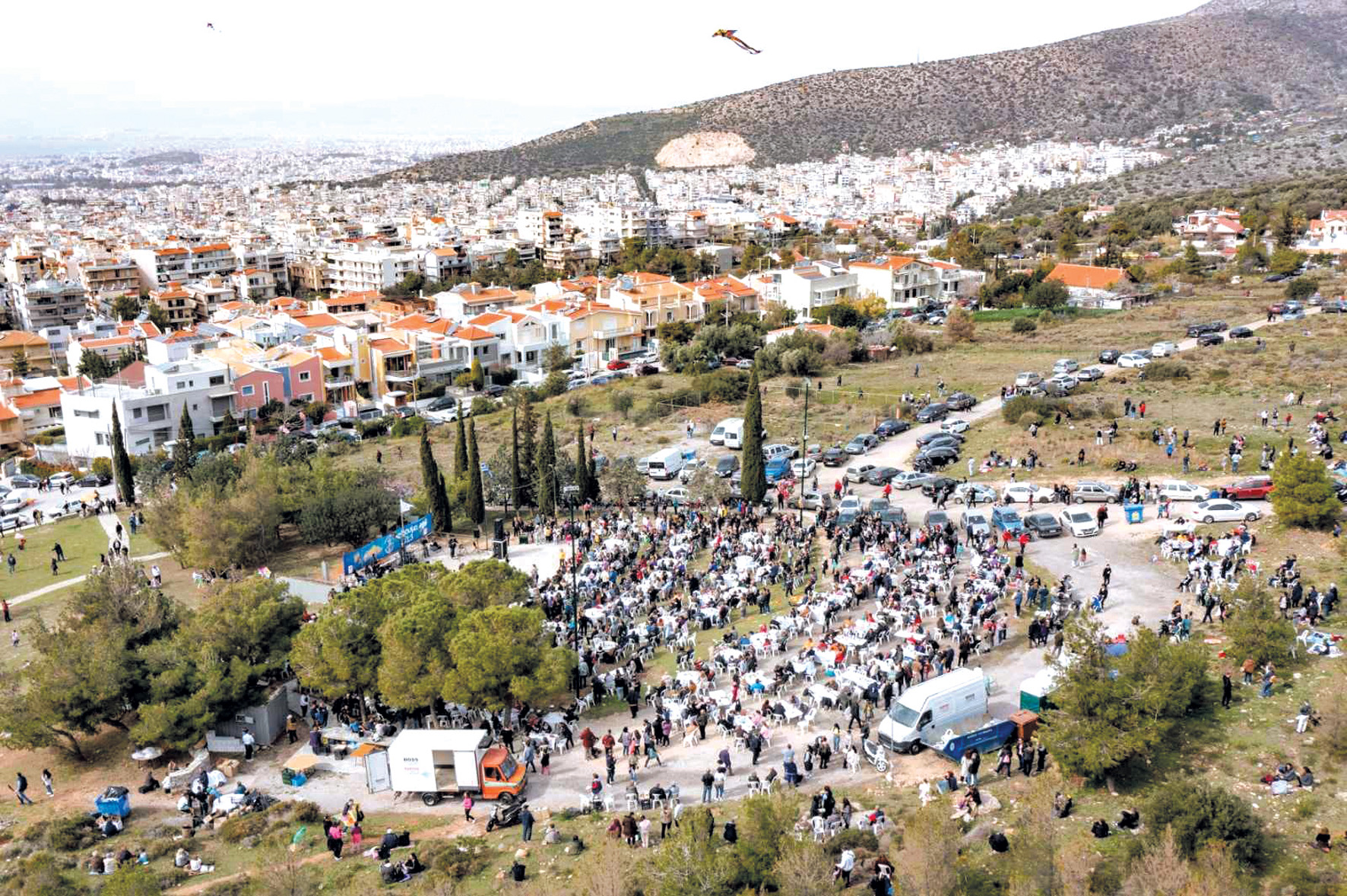 Παραδοσιακά Κούλουμα στους πρόποδες του Υμηττού, με πλούσια σαρακοστιανά εδέσματα, τραγούδι και χορό κάτω από τον πολύχρωμο ουρανό, που είχε γεμίσει χαρταετούς! Η Γλυφάδα γιόρτασε όπως παλιά!