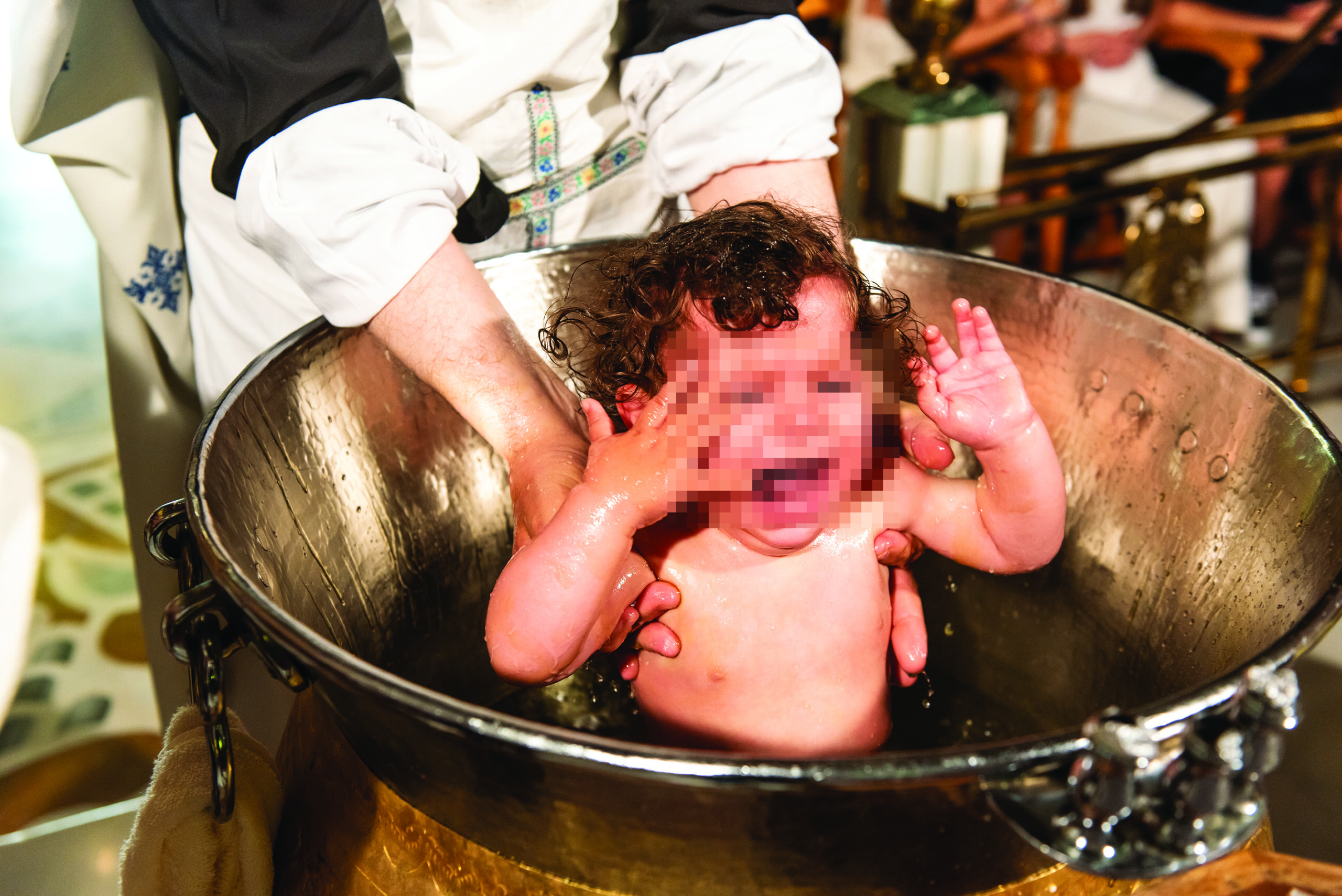 Όταν έφθασε η στιγμή της κολυμπήθρας η νεοφώτιστη έκανε αισθητή την παρουσία της με το κλάμα της που διήρκησε όσο και οι τρεις φορές που βούτηξε στην κολυμπήθρα. «Βαπτίζεται η δοῦλη τοῦ Θεοῦ … Χρυσάνθη εἰς τό ὄνομα τοῦ Πατρός καί τοῦ Υἱοῦ καί τοῦ Ἁγίου Πνεύματος» έψαλε ο π. Γεώργιος τρεις φορές και η μικρούλα παραδόθηκε στην αγκαλιά της νονάς Μαριλένας.