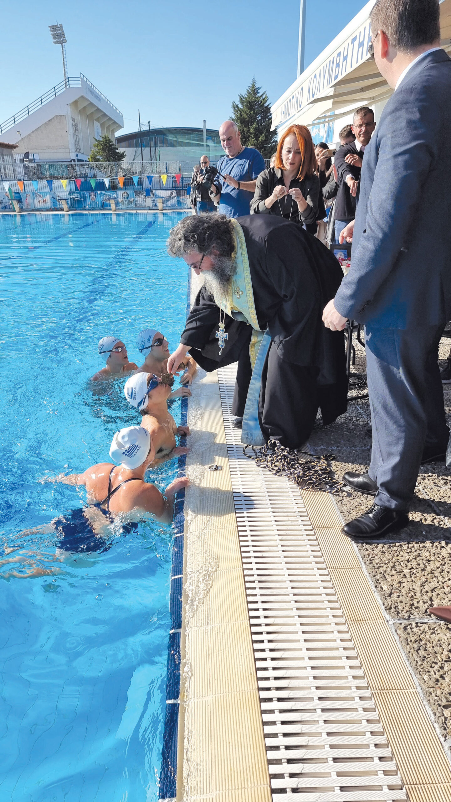 Στο Δήμο Ελληνικού Αργυρούπολης ο Δήμαρχος και οι Δημοτικοί Σύμβουλοι έδωσαν το παρών σε διαφορετικούς Ιερούς Ναούς προκειμένου να βρεθούν σε περισσότερα σημεία του Δήμου. Στον Ιερό Ναό Κοιμήσεως Θεοτόκου στην Αργυρούπολη εψάλη η Θεία Λειτουργία και στη συνέχεια ο αγιασμός των υδάτων τελέστηκε έξω από τον Ιερό Ναό με τον πατέρα Δημήτριο να μας ευλογεί και να μας μεταφέρει το Άγιο και Ιερό μήνυμα της ημέρας. Μετά από αρκετά χρόνια, εξαιτίας της πανδημίας του κορωνοϊού, έγινε ο καθιερωμένος αγιασμός των υδάτων και η ρίψη του Τιμίου Σταυρού στα νερά του Δημοτικού Κολυμβητηρίου της Αργυρούπολης, όπου πολλοί δημότες και αθλητές έπεσαν για να πάρουν την ευλογία. Ο Τίμιος Σταυρός έπεσε τρεις φορές και τις δύο από αυτές έπεσαν για να πάρουν την ευλογία τα παιδιά ΑμεΑ και οι κολυμβητές! Τις εντυπώσεις έκλεψε ο μικρότερος όλων κολυμβητής που με επιμονή και θέληση έφτασε στο τέρμα και πήρε και αυτός την ευλογία!