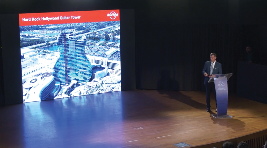 Μέσω βίντεο χαιρέτησε ο Πρόεδρος της Hard Rock International Τζιμ Αλεν και ζήτησε συγγνώμη που δεν μπόρεσε να παρευρεθεί στην εκδήλωση αυτή. Τον εκπροσώπησε όμως δια ζώσης ο John Eder ο οποίος μεταξύ άλλων ανέφερε: «Στο Ελληνικό θα δημιουργηθεί ένας παγκοσμίου φήμης προορισμός, ένα Ολοκληρωμένο Τουριστικό Συγκρότημα που δεν επικεντρώνεται αποκλειστικά στα τυχερά παιχνίδια – το βάρος πέφτει στην ψυχαγωγία». Χαρακτήρισε το Ελληνικό «εκπληκτική διεθνή πύλη-πόλη» και θεωρεί πολύ θετική εξέλιξη τη δέσμευση της Lamda Development και της οικογένειας Λάτση να αναλάβει το 100% της επένδυσης. Υποστήριξε ότι από τη στιγμή που ληφθεί απόφαση για την άδεια, η Hard Rock θα χρειαστεί από 22 έως 28 μήνες για την κατασκευή του έργου, από το οποίο θα προκύψουν «εκπληκτικές ευκαιρίες απασχόλησης», με προτίμηση στην εντοπιότητα, στους κατοίκους της Αθήνας και τους Έλληνες».