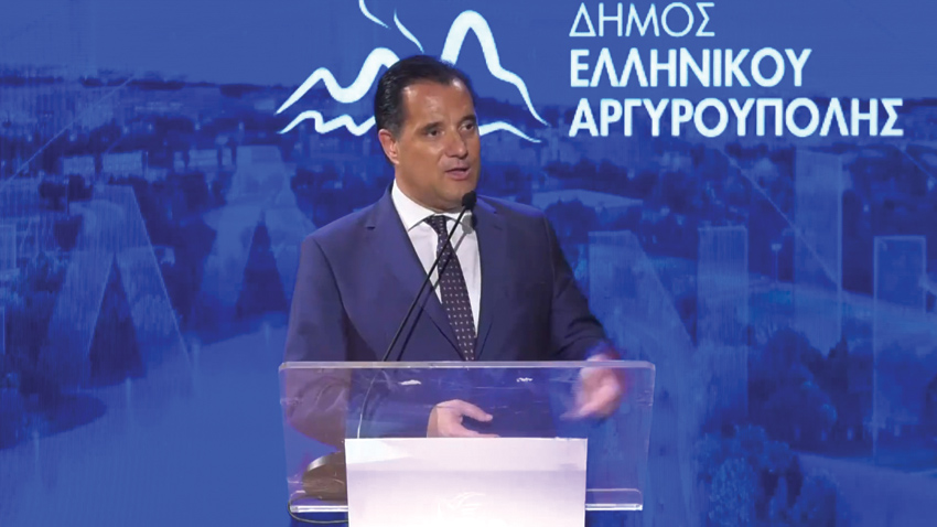 Τον Γιάννη Κωνσταντάτο διαδέχτηκε στο βήμα ο Υπουργός Άδωνις Γεωργιάδης. Πρώτο μέλημα του οποίου ήταν να συγχαρεί τον π. Πρωθυπουργό Αντώνη Σαμαρά για την έμπνευση του έργου. Έπειτα έκανε αναφορά στον οικοδεσπότη Δήμαρχο και χαρακτήρισε την ημέρα αυτή ιστορική. Μεταξύ άλλων τόνισε ότι ο χρόνος που απαιτείται για να διευθετηθούν γραφειοκρατικές διαδικασίες και η υπογραφή των ΚΥΑ είναι τόσο μεγάλος που θα χρειαστούν 3.000 χρόνια. Θέλησε έτσι να δείξει ότι η σημερινή Κυβέρνηση κινήθηκε με ταχύτατους ρυθμούς και ότι ο ίδιος προσωπικά το έτρεξε ως η πρώτη του δουλειά με το που ανέλαβε το Υπουργείο. «Χάρη στην αμέριστη συμπαράσταση του Πρωθυπουργού, υπήρξε πρωτοφανής συντονισμός όλων των υπουργείων», είπε. Στη συνέχεια αναφέρθηκε στο διαγωνισμό που επρόκειτο να διεξαχθεί την Παρασκευή, 4 Οκτωβρίου. «Έχει έρθει η ώρα να χτίσουμε την νέα Ελλάδα, που θα αφήσει πίσω της την παθογένεια του παρελθόντος», είπε και στο λόγο του πρόσθεσε ιστορική χροιά. «Κάθε νέα εποχή έχει ένα σύμβολο. Για την νέα Ελλάδα, το Ελληνικό και η επένδυσή του θα αποτελέσει το σύμβολο της Ελλάδας που θα είναι ανταγωνιστική, φωτεινή, θα παράγει πλούτο, θα είναι παράδειγμα προς μίμησιν». Κλείνοντας έκανε αναφορά στον Επιτάφιο του Περικλέους και εξήρε πολιτικά το ήθος και τη στάση του Γιάννη Κωνσταντάτου.