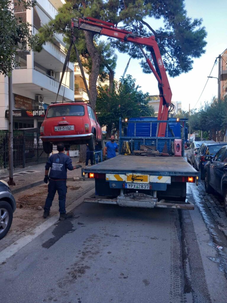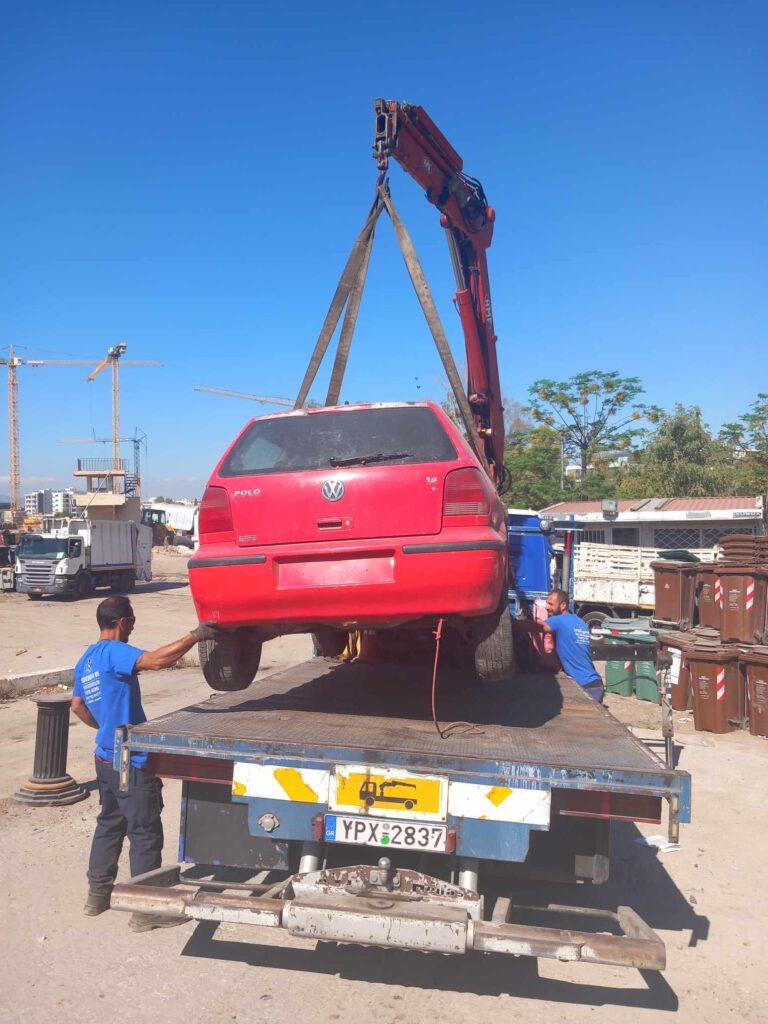 Τα συνεργεία καθαριότητας και περιβάλλοντος του Δήμου Αλίμου συνέχισαν το έργο της συλλογής των εγκαταλελειμμένων αυτοκινήτων.