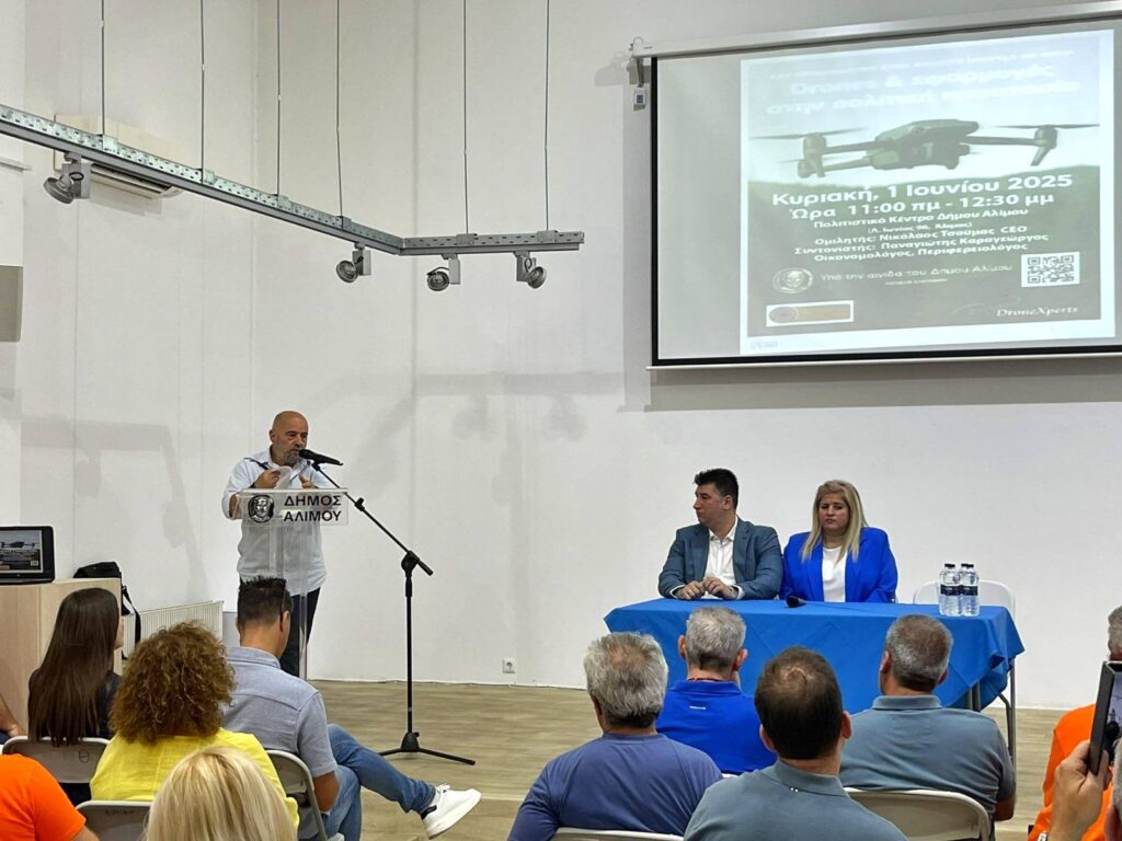 Ενημερωτική ημερίδα με θέμα «Drones και εφαρμογές στην Πολιτική Προστασία» από το Τμήμα Πολιτικής Προστασίας Αλίμου και την DroneXperts πραγματοποιήθηκε στο Πολιτιστικό Κέντρο του Δήμου Αλίμου.