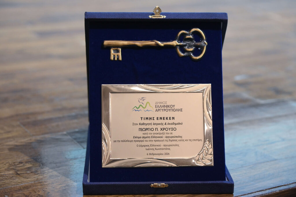Ιδιαίτερα συγκινητική στιγμή αποτέλεσε η ανακήρυξη του διακεκριμένου Καθηγητή Ιατρικής και τακτικού μέλους της Ακαδημίας Αθηνών Γεώργιου Π. Χρούσου σε Επίτιμο Δημότη του Δήμου Ελληνικού – Αργυρούπολης, ως ένδειξη τιμής και αναγνώρισης για τη μακρόχρονη και πολύτιμη προσφορά του στην επιστήμη, στην έρευνα και στην κοινωνία.