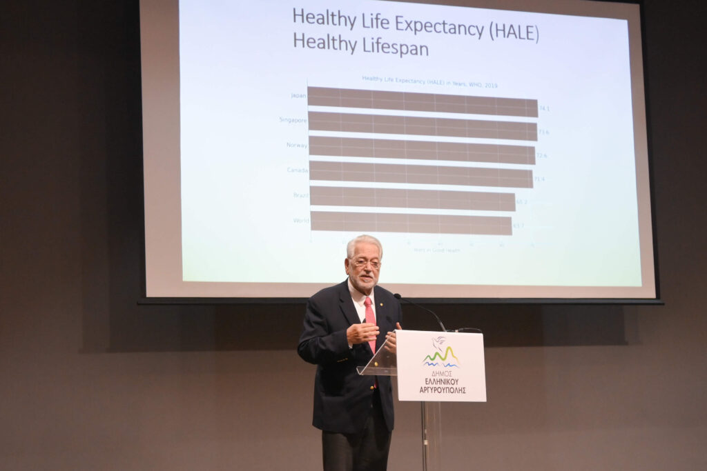 Παρουσία πλήθους πολιτών, επιστημόνων και εκπροσώπων του Δήμου, ο κ. Χρούσος ανέπτυξε με επιστημονική τεκμηρίωση τη στενή σχέση ανάμεσα στο στρες, την υγεία και τη μακροζωία, επισημαίνοντας ότι η ποιότητα και η διάρκεια της ζωής συνδέονται άμεσα με τον τρόπο ζωής, την πρόληψη και τη φροντίδα του εαυτού από νεαρή ηλικία. Παρουσιάζοντας σύγχρονα ερευνητικά δεδομένα, τόνισε πως η σωματική δραστηριότητα, η ισορροπημένη διατροφή, η ψυχική ανθεκτικότητα και οι ισχυροί κοινωνικοί δεσμοί αποτελούν βασικούς πυλώνες ευεξίας, ενώ κοινωνίες που επενδύουν στη γνώση, στην αλληλεγγύη και στη συστηματική πρόληψη καταγράφουν υψηλότερα επίπεδα υγείας και προσδόκιμου ζωής.