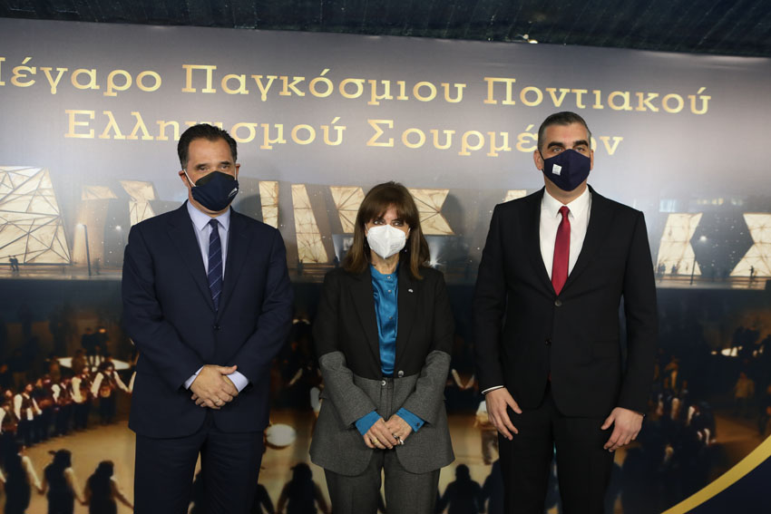 Ο Υπουργός Ανάπτυξης και Επενδύσεων, κ. Άδωνις Γεωργιάδης, απηύθυνε χαιρετισμό εκ μέρους του Πρωθυπουργού και μεταξύ άλλων επεσήμανε: «Έλειπε ένα σημείο αναφοράς διεθνώς για τον ποντιακό ελληνισμό. Και δεν θα μπορούσε να βρεθεί καλύτερο σημείο, δεν θα μπορούσε να βρεθεί καλύτερος τόπος όχι μόνο από την περιοχή των Σουρμένων, από την περιοχή του Ελληνικού, από την περιοχή που ήρθαν οι πρόσφυγες εδώ και μάλιστα τύχη αγαθή άμα τη επετείω του ενός αιώνα από την καταστροφή, αλλά και μέσα στην καρδιά του έργου που συμβολίζει την Ελλάδα του μέλλοντος.