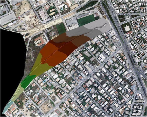 Εικόνα 2: Ψηφιακό Μοντέλο Εδάφους, στην διατομή φυσική, ανεπένδυτη τραπεζοειδούς – τριγωνικής διατομή ρ. Ευρυάλης, πηγή Δ. Ελληνικού Αργυρούπολης