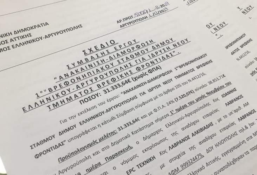 Την ίδρυση ενός νέου Βρεφικού Τμήματος στους Παιδικούς Σταθμούς του Δήμου Ελληνικού Αργυρούπολης ανακοίνωσε στις αρχές της εβδομάδας ο Δήμαρχος Γιάννης Κωνσταντάτος. «Η διαρκώς αυξανόμενη ανάγκη των οικογενειών της πόλης μας να φιλοξενήσουμε περισσότερα βρέφη στους παιδικούς σταθμούς μας οδήγησε στην υλοποίηση μιας ακόμα προεκλογικής μας εξαγγελίας για την δημιουργία ενός ακόμα Τμήματος σύμφωνα με όσα προβλέπει η σχετική νομοθεσία και υπογράφτηκε στις 11 Νοεμβρίου με τον εργολάβο.