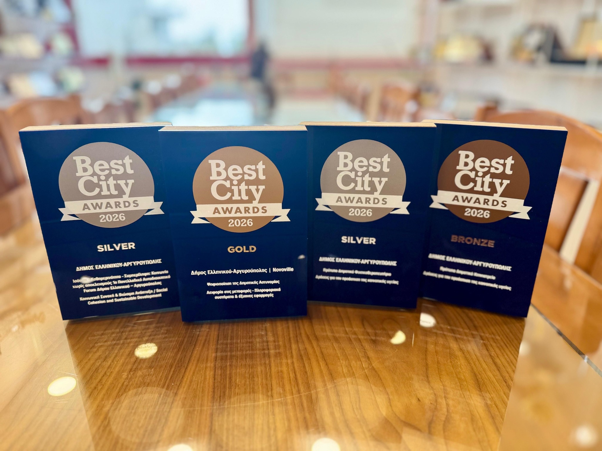 Με 4 νέες σπουδαίες διακρίσεις – δύο στον τομέα της υγείας, μία στην ψηφιακή καινοτομία και μία στην κοινωνική μας πολιτική – ο Δήμος Ελληνικού Αργυρούπολης βραβεύτηκε κατά την τελετή απονομής των Best City Awards 2026, επιβεβαιώνοντας ότι η δουλειά που γίνεται είναι οργανωμένη, στοχευμένη και μετρήσιμη.