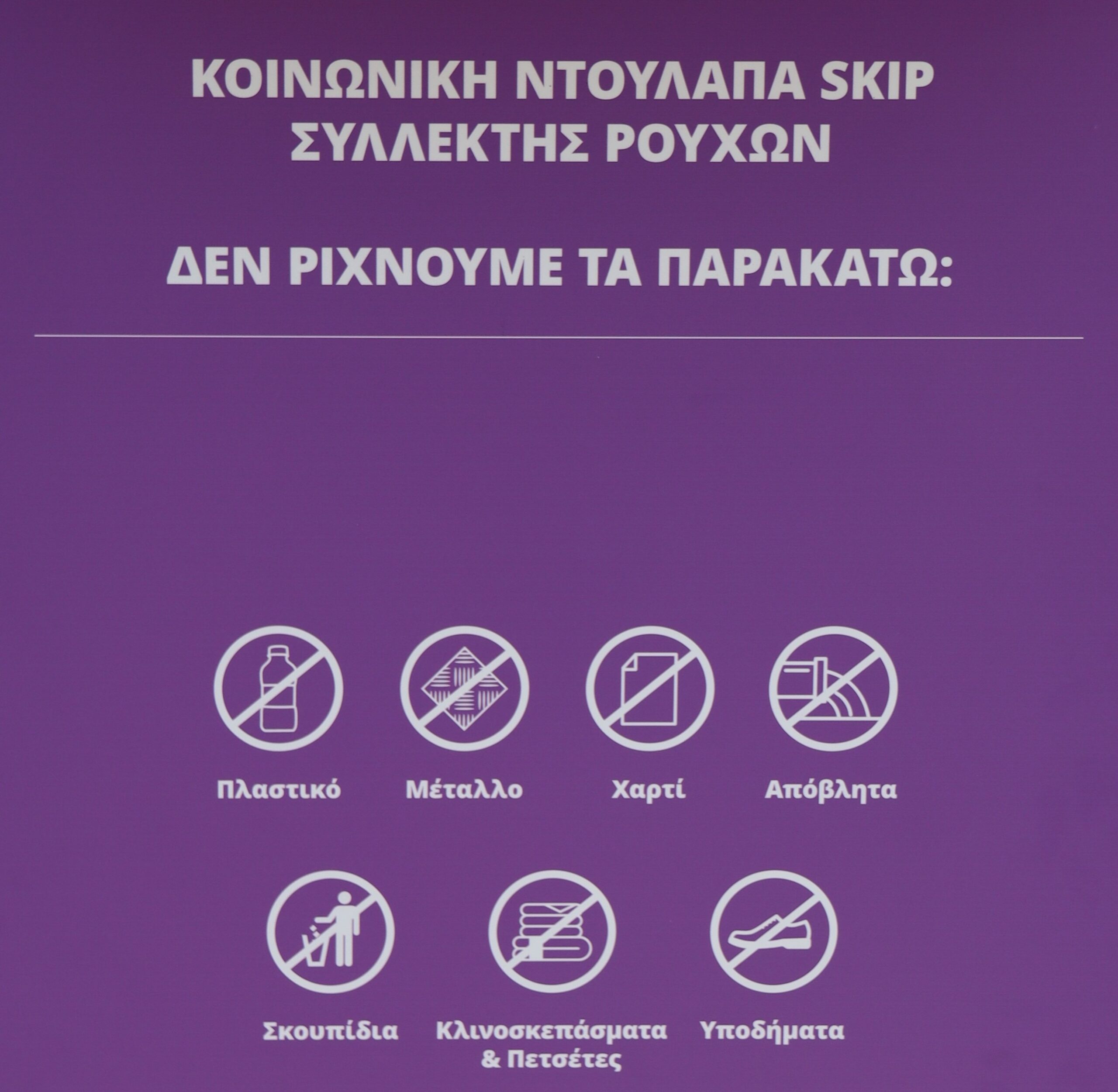 Στην οδό Ελ. Βενιζέλου (μπροστά από το ανοιχτό γήπεδο μπάσκετ), στην Πλατεία Καραϊσκάκη (Κλούβα) στο Άνω Καλαμάκι ο Δήμος Αλίμου σε συνεργασία με την Skip τοποθέτησαν μία «Κοινωνική Ντουλάπα». Εκεί οι πολίτες μπορούν να ρίχνουν ρούχα που δεν χρειάζονται, αντί να τα πετούν στους κάδους απορριμμάτων επιβαρύνοντας το περιβάλλον.