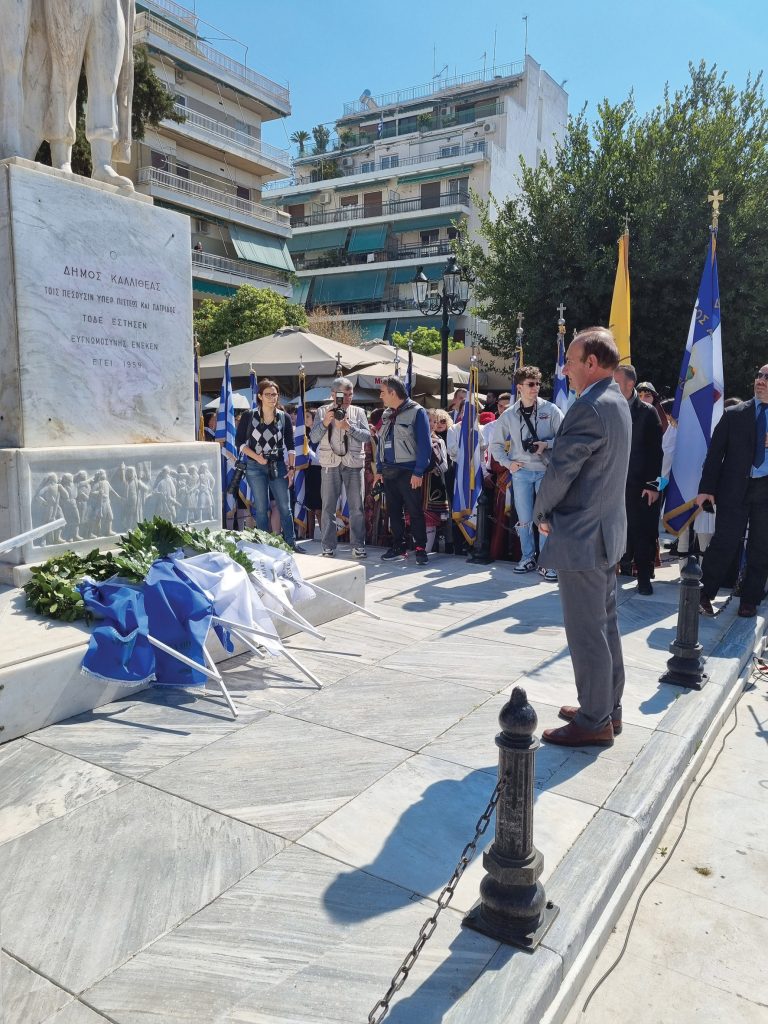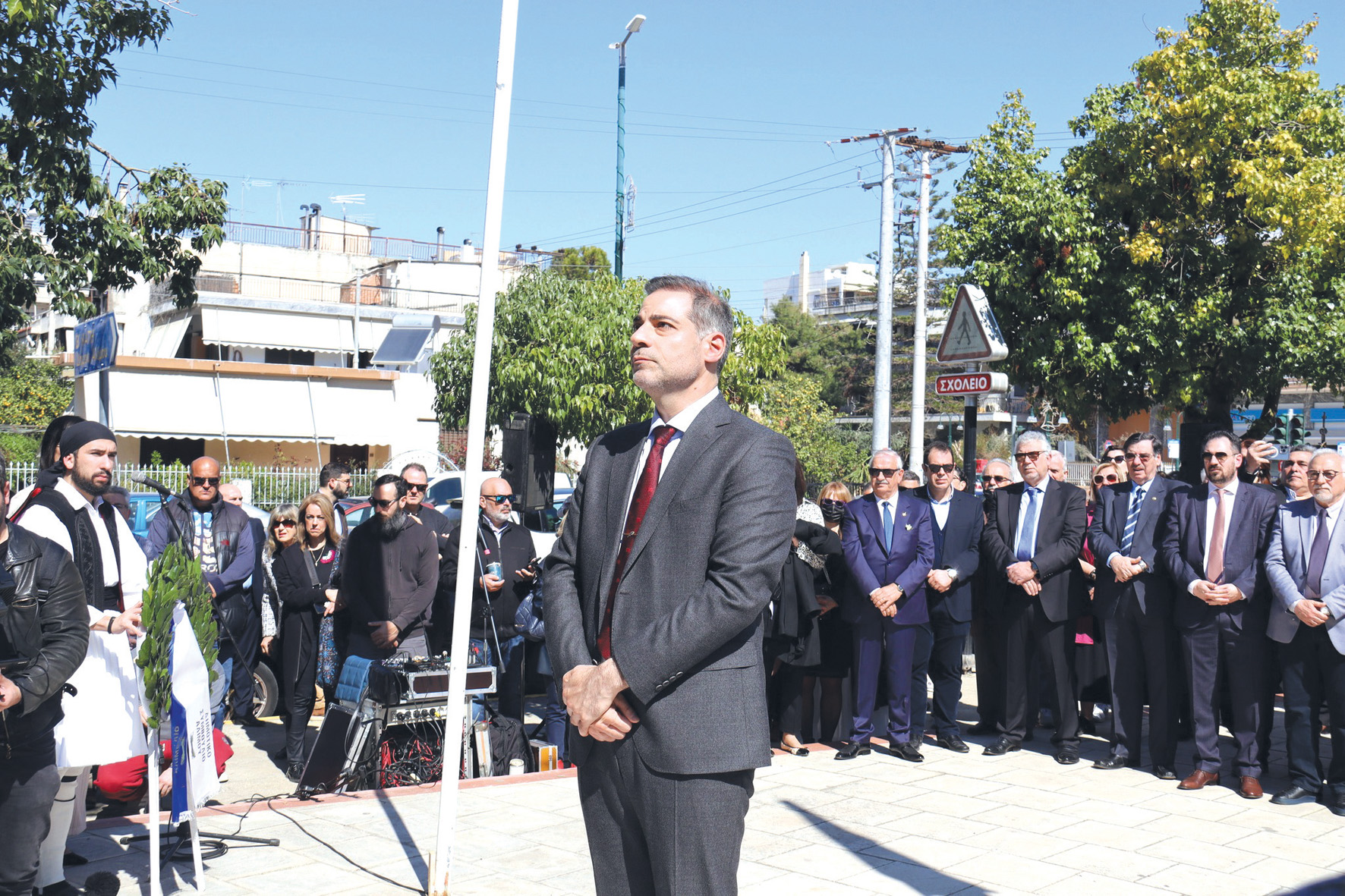 Ο Δήμαρχος Γιάννης Κωνσταντάτος, σύσσωμη η δημοτική αρχή, βουλευτές, πολιτευτές και εκπρόσωποι των φορέων και συλλόγων της πόλης παρέστησαν και στις δύο παρελάσεις των δημοτικών κοινοτήτων, με τον Δήμαρχο να καταθέτει στεφάνι στο Ελληνικό.