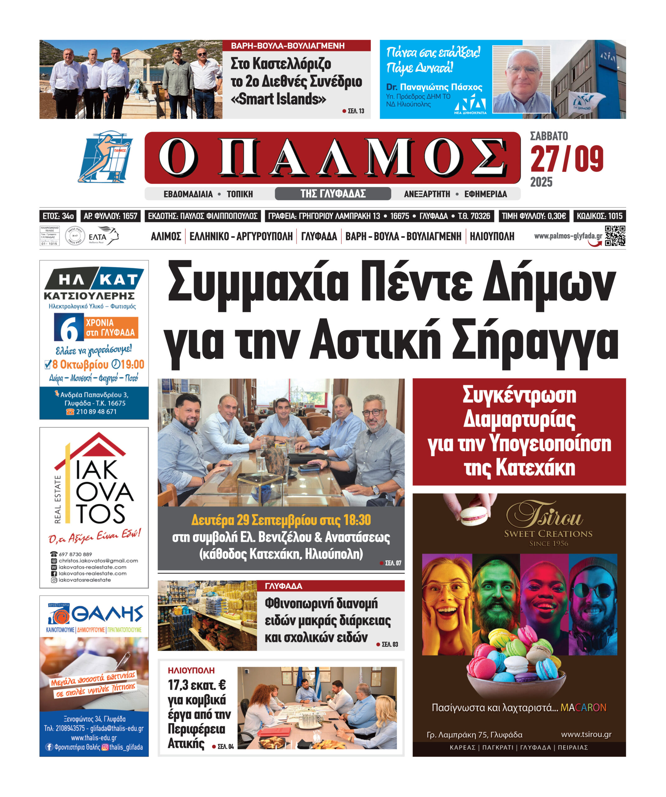 Διαβάστε Το Σάββατο 27 Σεπτεμβρίου 2025, Στον «Παλμό Της Γλυφάδας»…