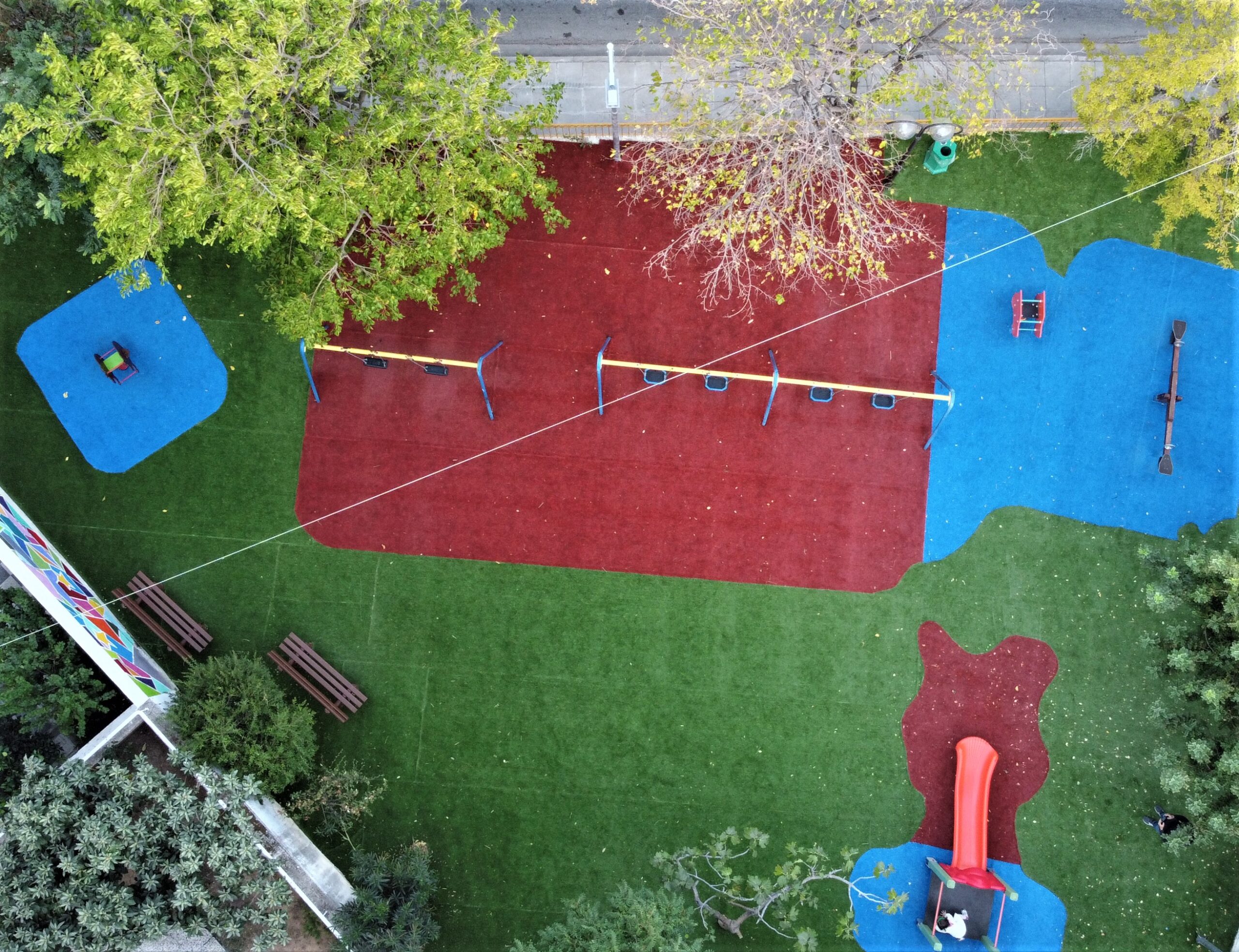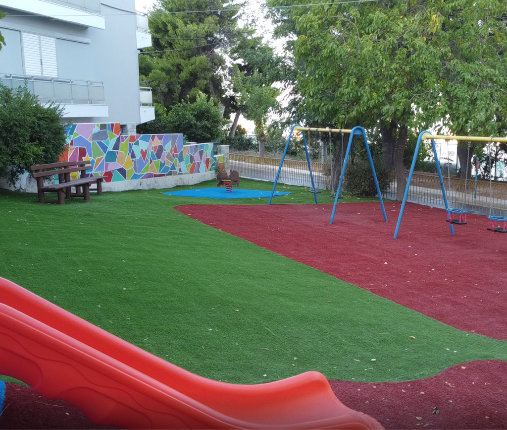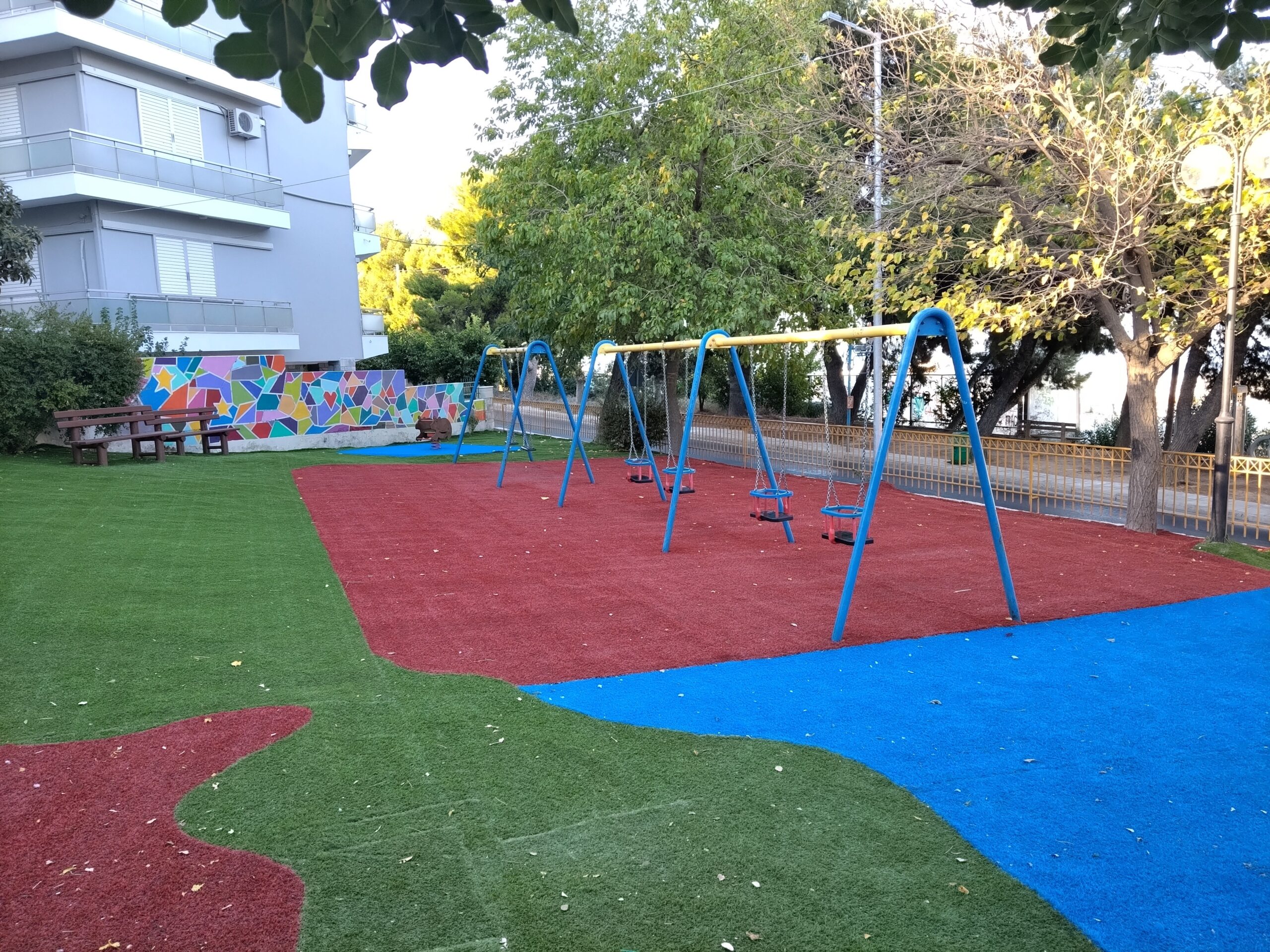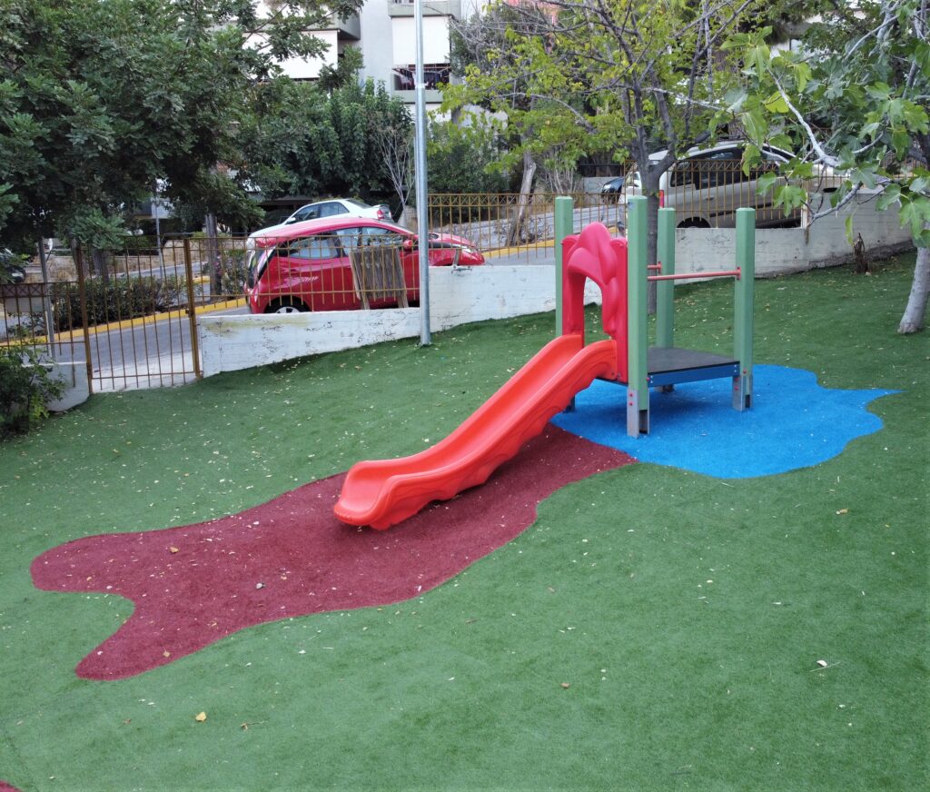 Τοποθετήθηκαν 437m2 νέου ολοκληρωμένου συστήματος δαπέδου ασφαλείας και νέα όργανα παιχνιδιού, συγκεκριμένα ένα σύνθετο όργανο τσουλήθρα, ένα ελατηριωτό αυτοκινητάκι, δύο παιδικά καθίσματα με αλυσίδες και τέσσερα καθίσματα νηπίων με αλυσίδες.