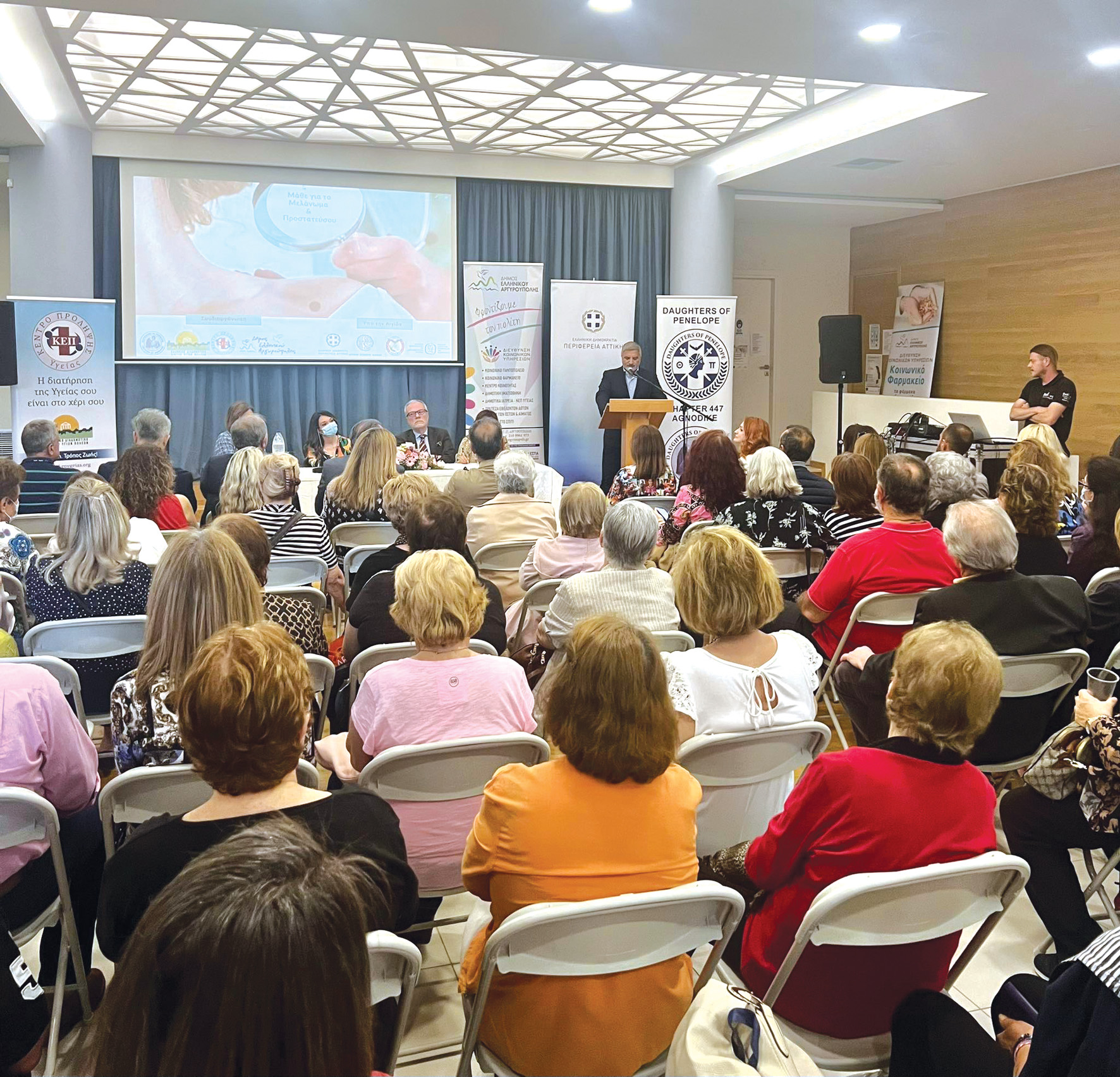 Ο Δήμος Ελληνικού-Αργυρούπολης σε συνεργασία με το Ελληνικό Διαδημοτικό Δίκτυο Υγιών Πόλεων (ΕΔΔΥΠΠΥ) και το τμήμα « Αγνοδίκη» Θυγατέρες της Πηνελόπης (AHEPA Family), υπό την αιγίδα της Περιφέρειας Αττικής, του Ιατρικού Συλλόγου Αθηνών (Ι.Σ.Α.) και της Ελληνικής Δερματολογικής και Αφροδισιολογικής Εταιρείας, πραγματοποίησε στις 31/05/2023 στο 1ο ΚΑΠΗ, εκδήλωση Ενημέρωσης – Ευαισθητοποίησης του κοινού για το Μελάνωμα.