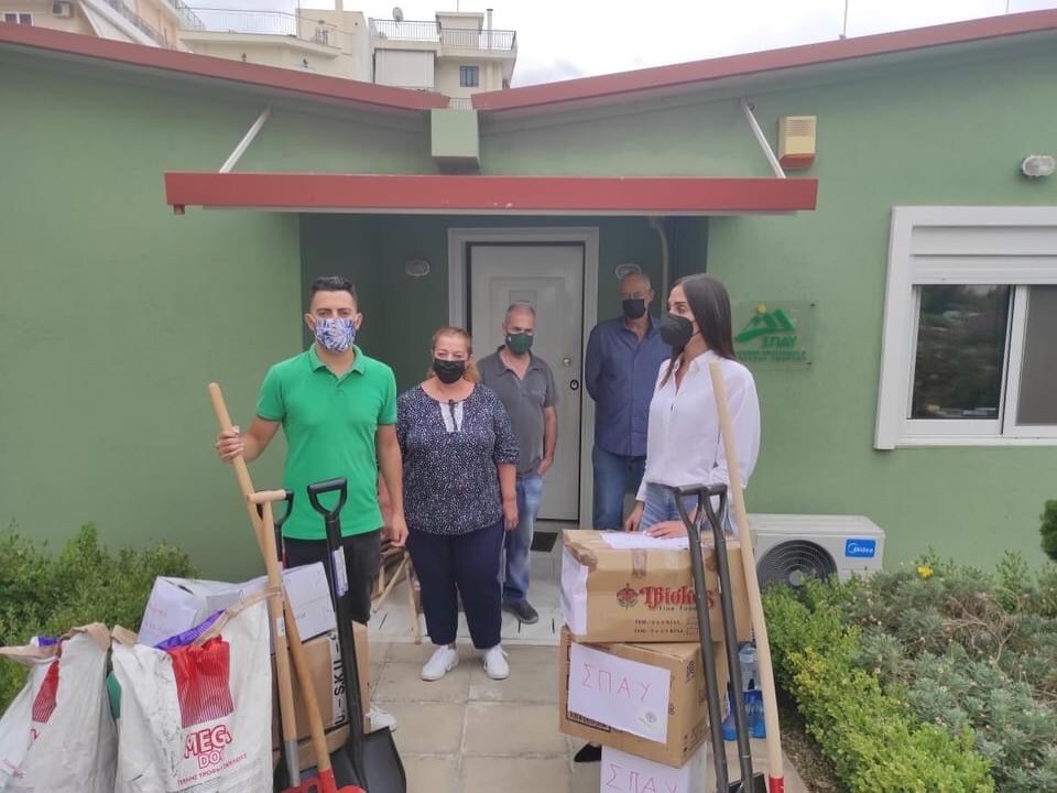 Στα γραφεία του ΣΠΑΥ εθελοντές του Humanity Greece χορήγησαν το Σύνδεσμο με χρήσιμο εξοπλισμό, σκαπτικά εργαλεία καθώς επίσης και τροφές για τους τετράποδους φίλους του βουνού μας.