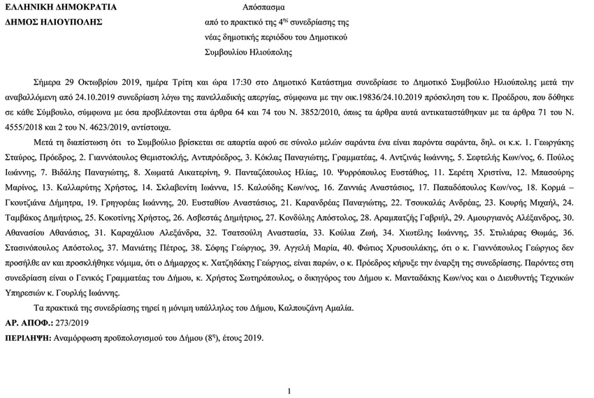 Ο Πρόεδρος του δημοτικού συμβουλίου, μετά την τοποθέτηση μας, ζήτησε να διορθωθεί και η διόρθωση είχε ως αποτέλεσμα να προστεθούν και άλλοι 10 λογαριασμοί… Οπότε, τελικά, άλλα συζητήσαμε, αλλά ψηφίσαμε και άλλα αναρτήθηκαν στη Διαύγεια!