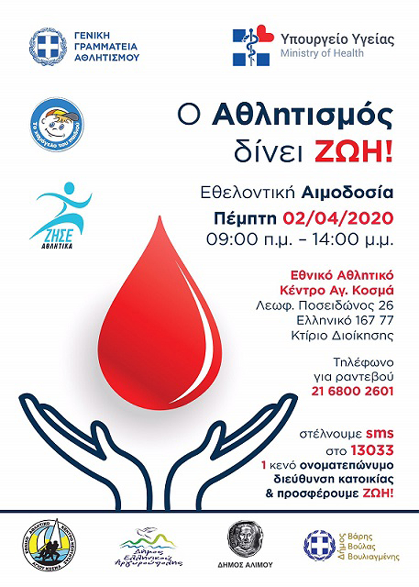 Εθελοντική αιμοδοσία, για την αντιμετώπιση των αυξημένων αναγκών σε αίμα, λόγω της πανδημίας του κορωνοϊού, έχει προγραμματιστεί για την Πέμπτη, 2 Απριλίου από 09:00 έως και 14:00 στο Εθνικό Αθλητικό
